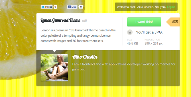 And the Melon Gumroad Themes set :: http://gum.co/lidD